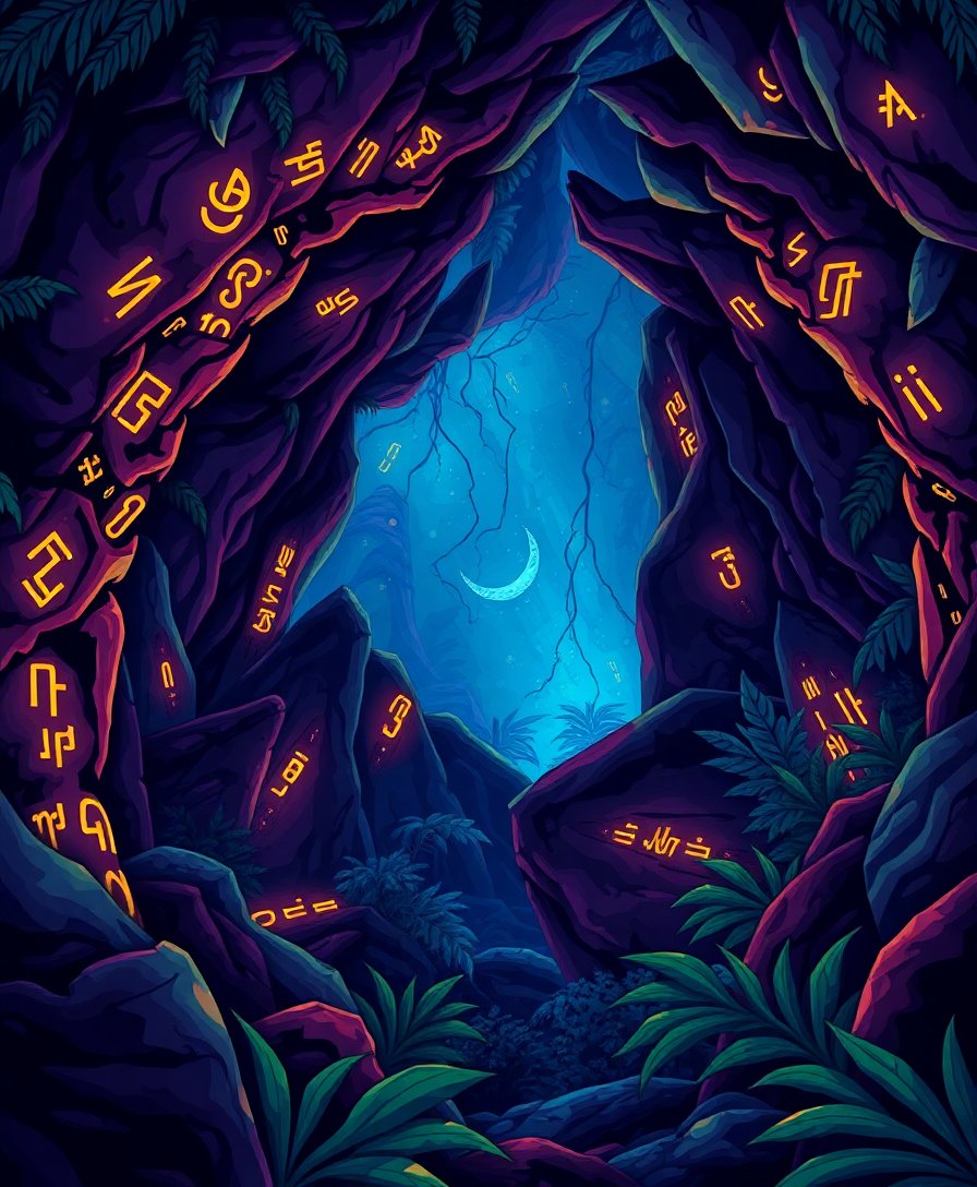 Subsequently, begin with darker shadow areas to establish depth and atmosphere. Then, gradually add torchlight effects and petroglyphs details. Furthermore, layer colors carefully to achieve realistic stone textures and glowing illumination effects.