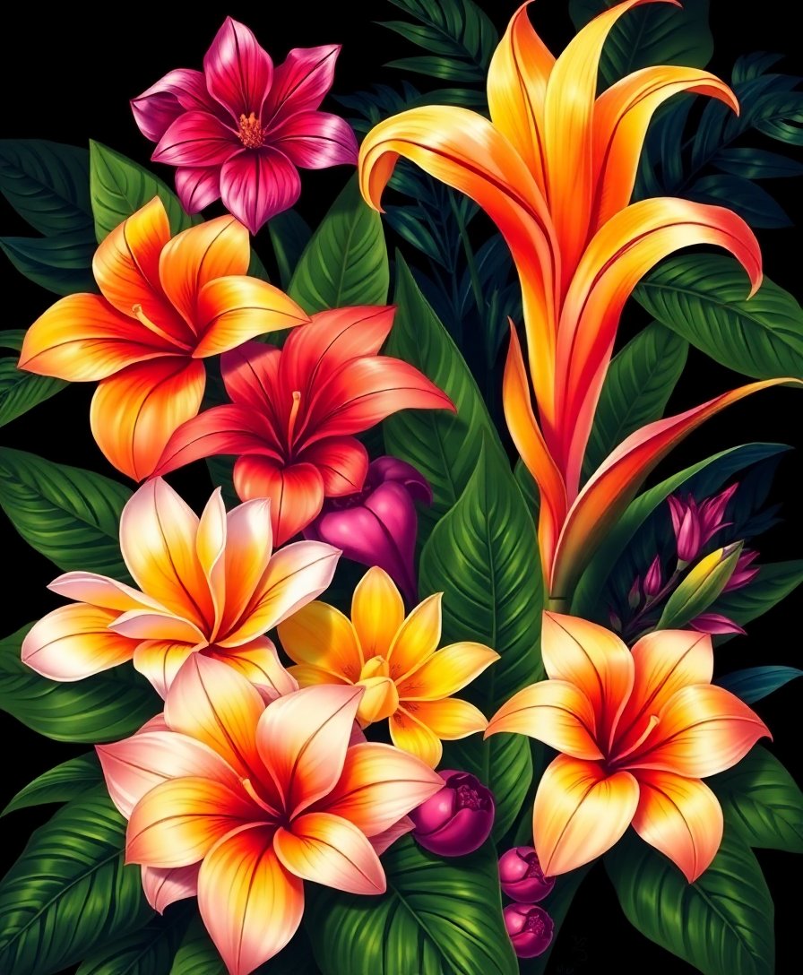 Illuminated Tropical Flora Paint By Numbers