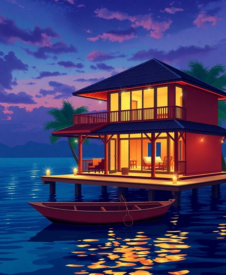 Illuminated Vintage Water Villa Paint By Numbers
