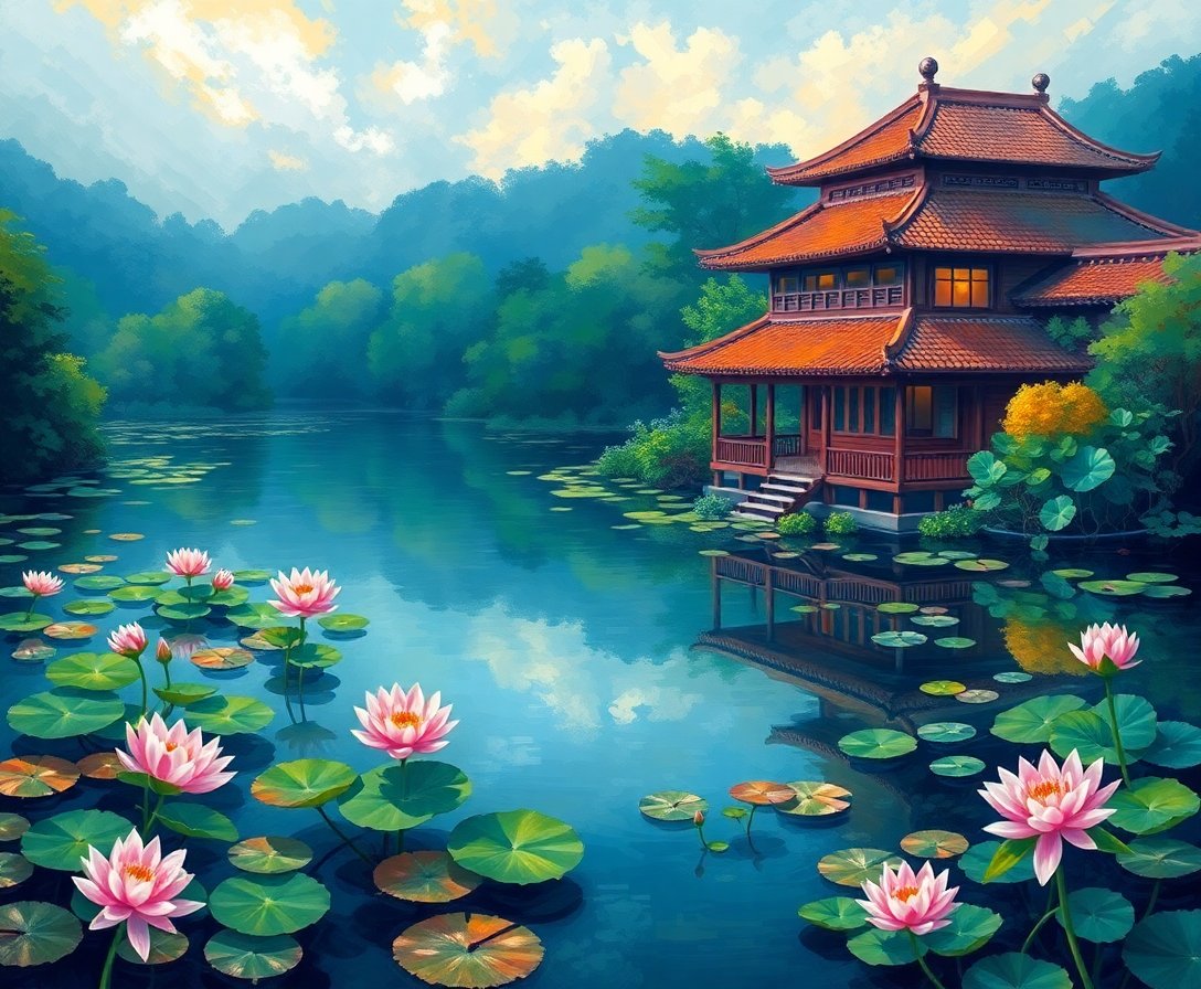 Benefits of This Impressionist Lotus Manor Waters Paint By Numbers