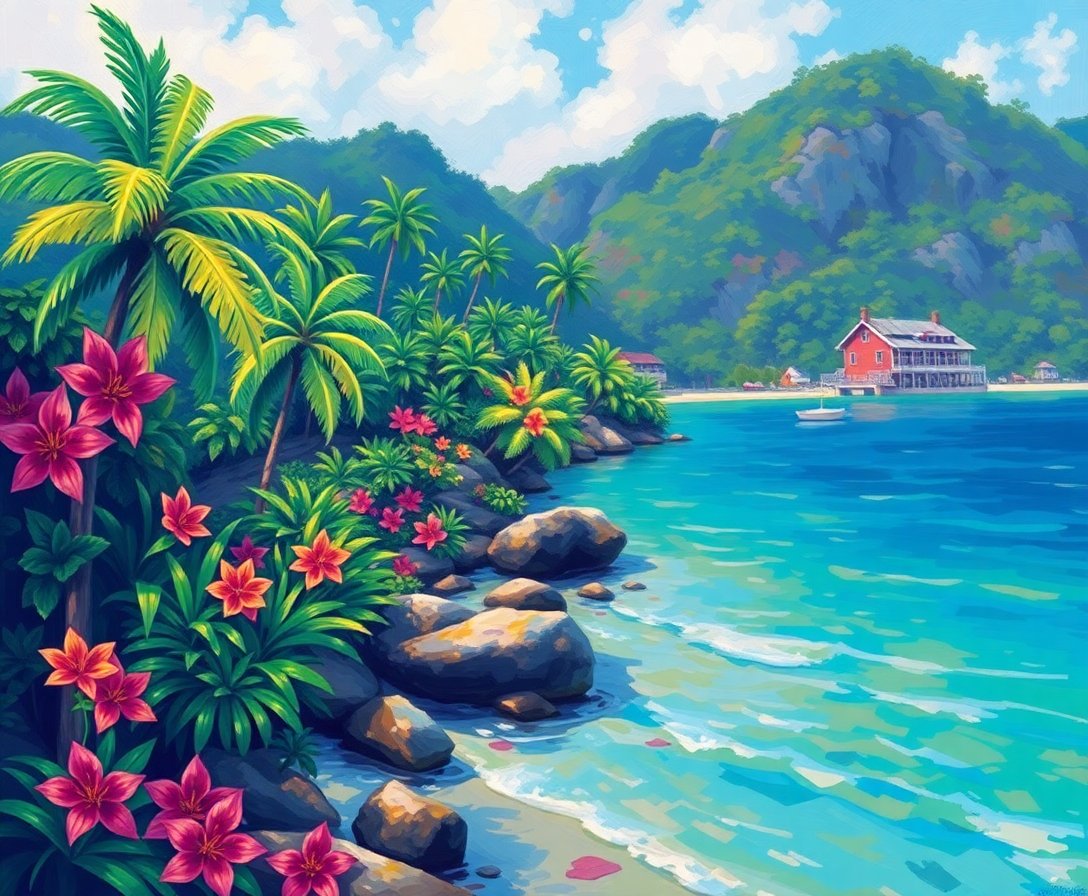 Ultimately, step back and admire your completed vintage-inspired masterpiece. Furthermore, the verdant tropical scene transforms any room into an artistic sanctuary. Your painted bay captures Impressionist techniques beautifully.