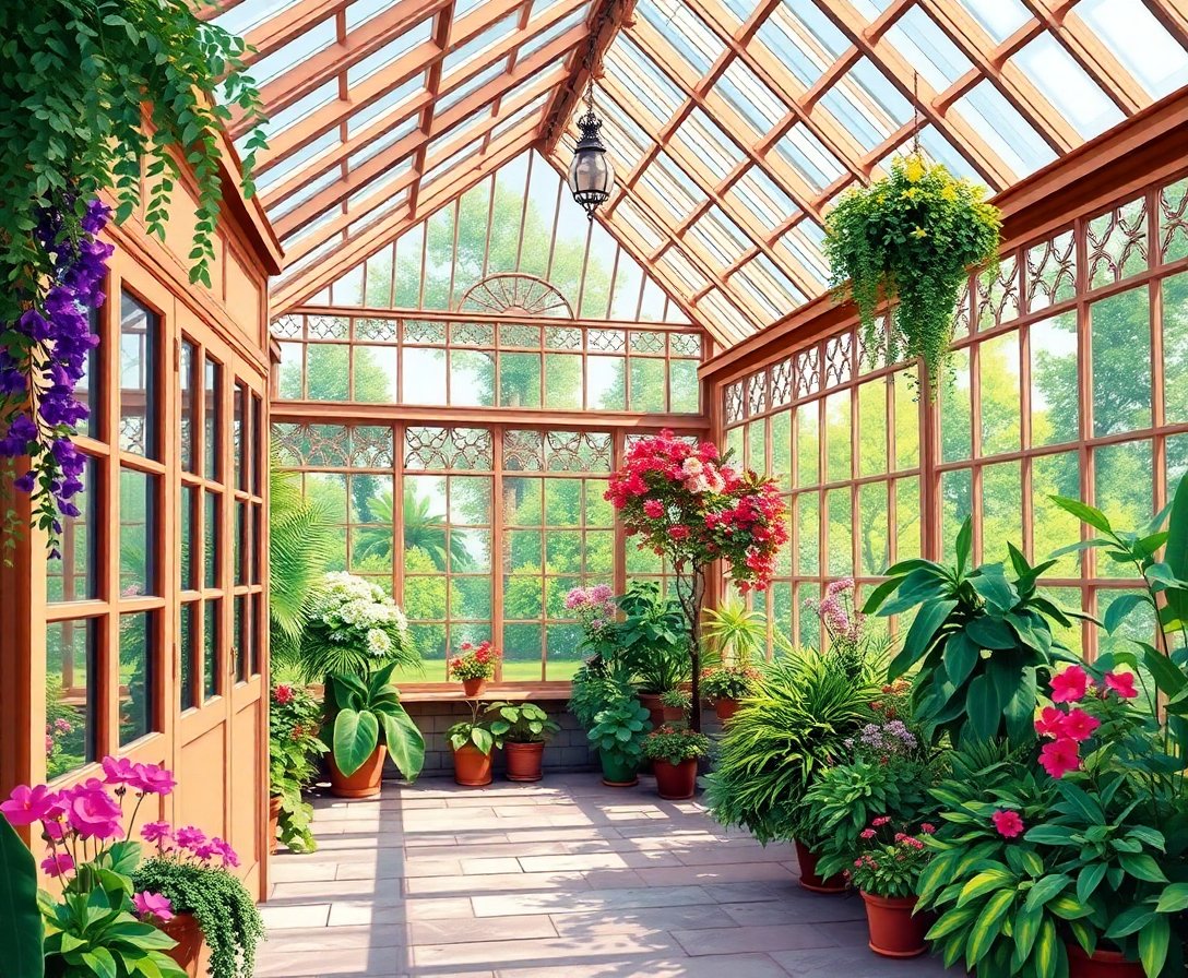 The high-quality linen canvas measures 16×20 inches, providing ample space to capture all the intricate Victorian conservatory details. This size fits standard frames and displays beautifully.