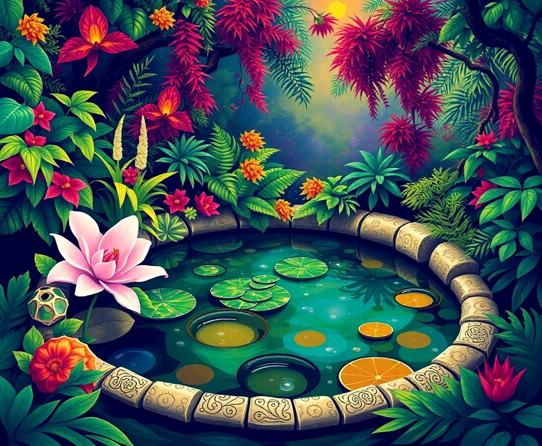 The realistic detail captures both Celtic crown symbolism and lush jungle pool elements, creating a unique fusion of cultural heritage and natural beauty that’s perfect for display.