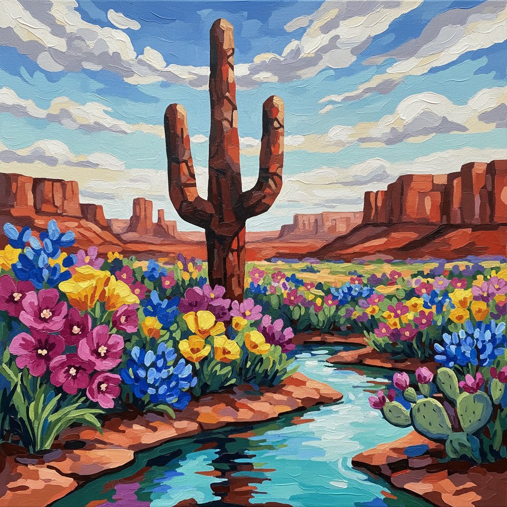 Transform your creative space with this breathtaking Iron Amidst Spring Blooms Paint By Numbers masterpiece. This unique desert scene captures the stunning contrast between weathered iron and vibrant wildflowers in full bloom. Experience the therapeutic joy of bringing this realistic seasonal nature scene to life, one numbered section at a time.
