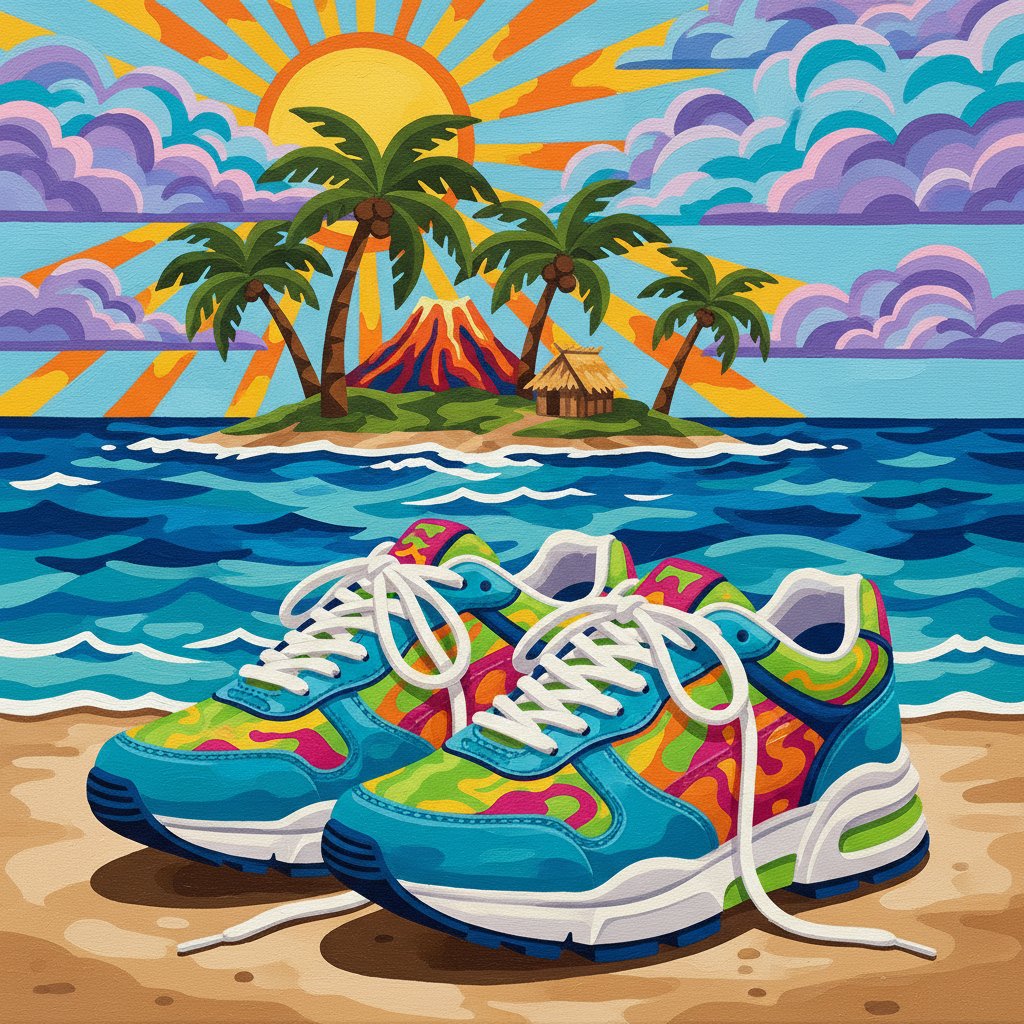 Experience the joy of creating your own Island Bound Retro Kicks masterpiece today. Therefore, let this tropical sneaker adventure transport you to paradise through art.