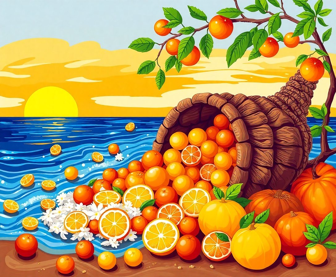 Transform your creative space with the Island Citrus Harvest Spill Paint By Numbers, capturing vibrant tropical fruits cascading from a rustic wicker cornucopia. This stunning artwork celebrates the abundance of thanksgiving harvest traditions while bringing exotic island flavors to your home. Additionally, this Thanksgiving Harvest Cornucopia design offers a unique twist on seasonal decor.