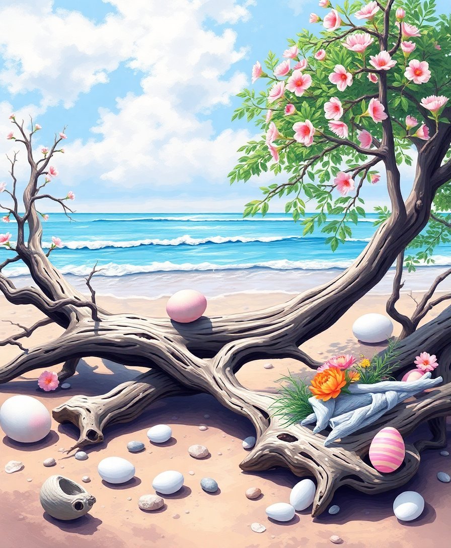 Transform your space with the Island Driftwood Easter Pastels Paint By Numbers, a stunning coastal-inspired artwork that captures the serene beauty of Easter celebrations by the shore. This elegant paint by numbers kit combines tropical driftwood textures with soft pastel hues, creating a masterpiece perfect for spring decorating.