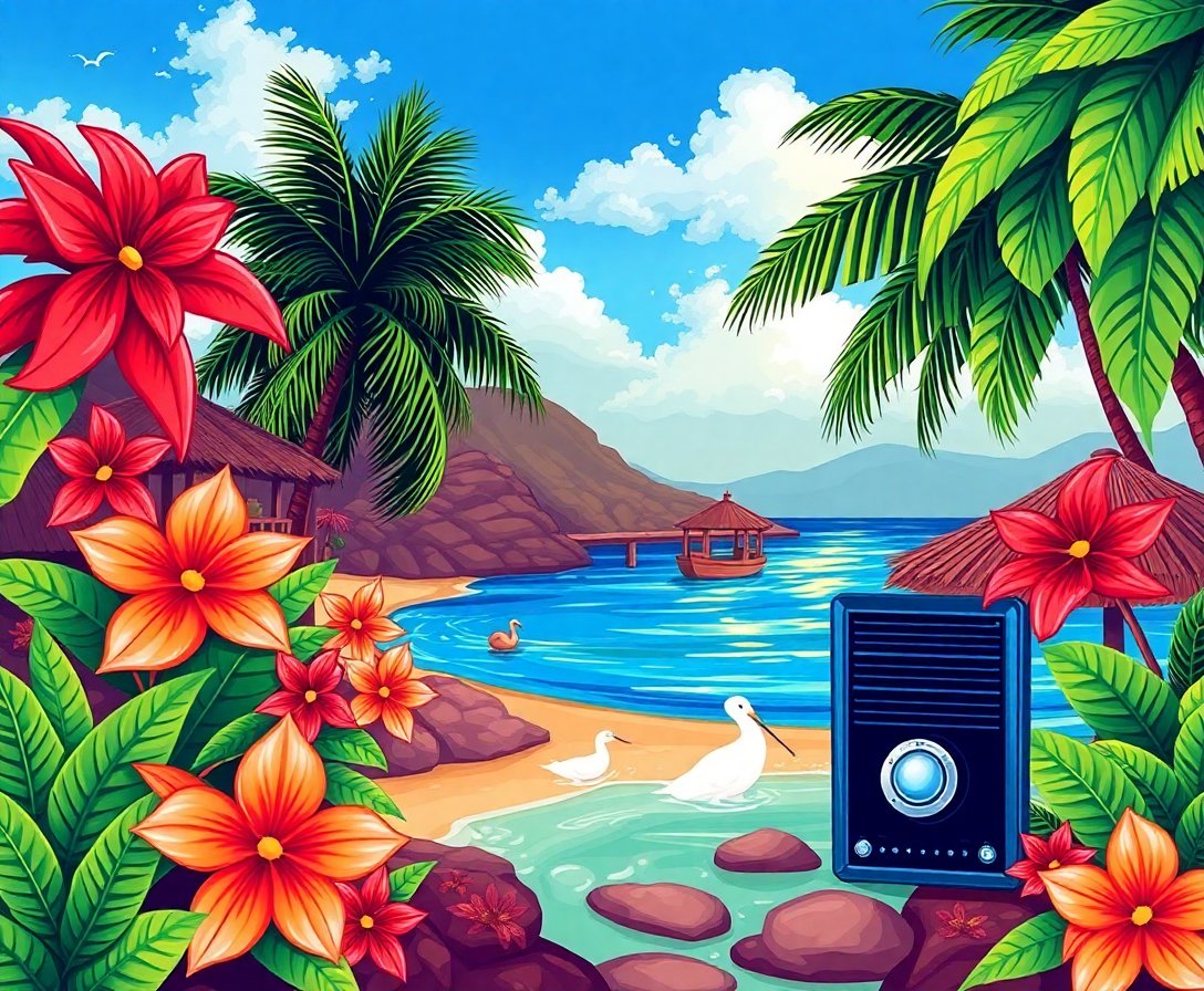 Transform your space with the enchanting Island Melodies Radio Paint By Numbers, a nostalgic journey combining vintage audio charm with tropical paradise. This unique paint by numbers kit captures the warm essence of classic bakelite radios surrounded by vibrant flowers and island beauty.