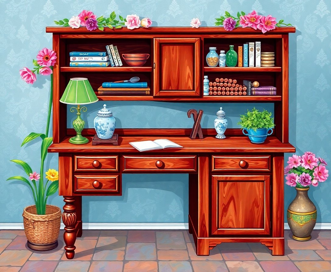Transform your space with the elegant charm of Island Memories Antique Desk Paint By Numbers. This sophisticated kit captures the timeless beauty of a vintage mahogany desk adorned with nostalgic memorabilia. Moreover, each carefully numbered section guides you through creating a realistic masterpiece that celebrates scholarly traditions.