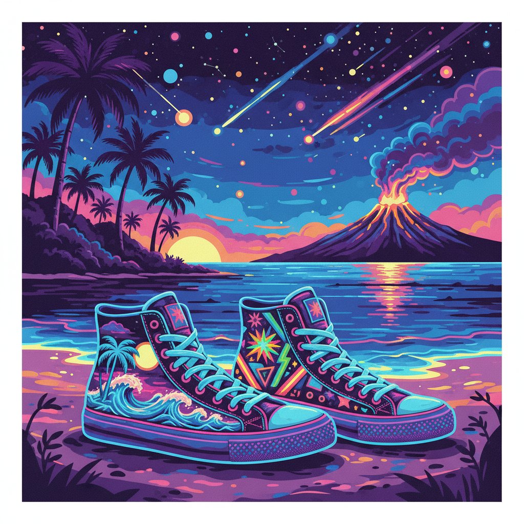 Transform your creative space with the Island Night High Tops Paint By Numbers kit. This vibrant design captures the essence of tropical nostalgia and retro sneaker culture. Experience the perfect blend of vintage aesthetics and modern artistic expression.