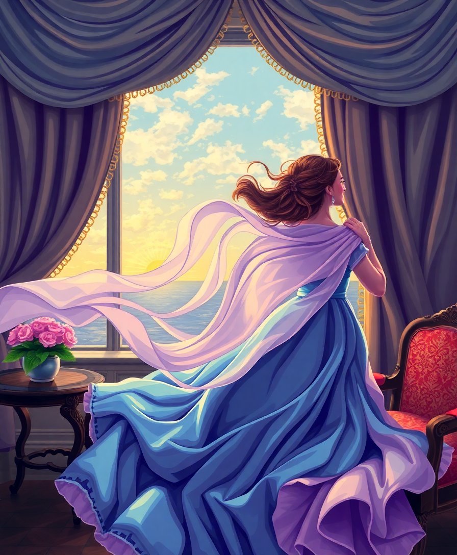 Ultimately, add final details to capture the silk’s realistic movement and texture. These finishing touches create depth and dimension. Your completed masterpiece will showcase the gentle motion of tropical breezes through elegant fabric.