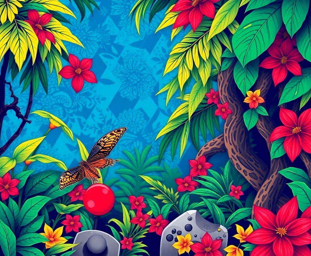 This design uniquely combines retro gaming nostalgia with tropical overgrowth, creating a striking conversation piece. The detailed joystick and control elements offer engaging painting challenges.