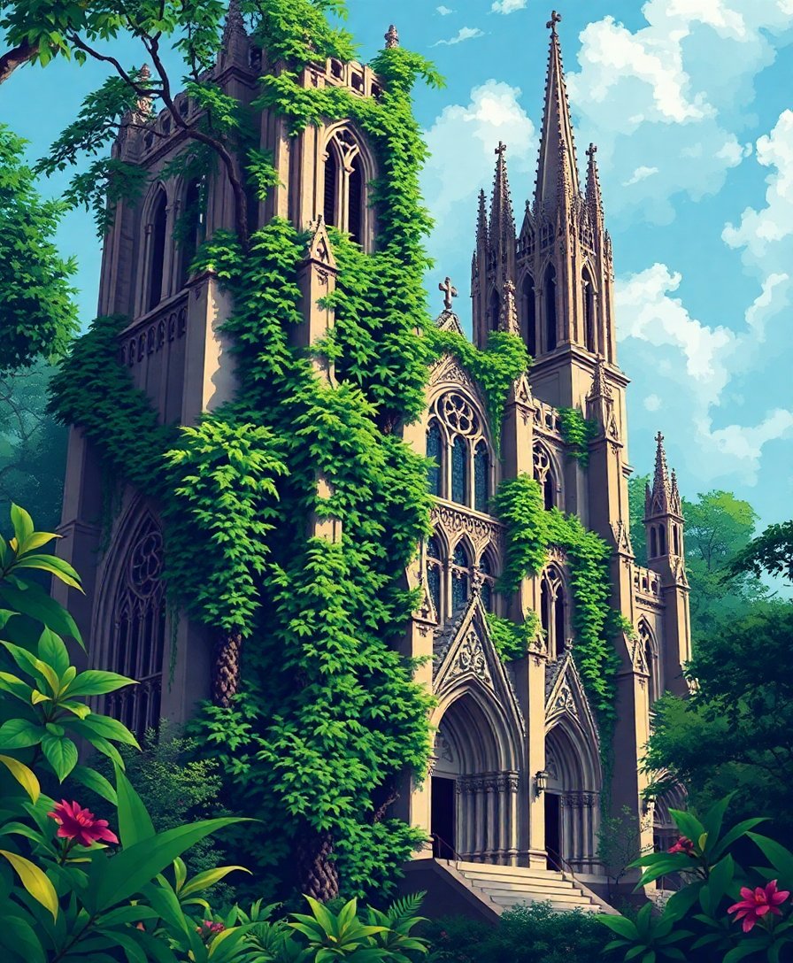 Experience the magic of creating art where ancient stone meets vibrant jungle life. Furthermore, this unique theme explores how nature reclaims human-made structures through Gothic architecture principles. Start your artistic adventure today and watch this stunning cathedral emerge through your creative vision.