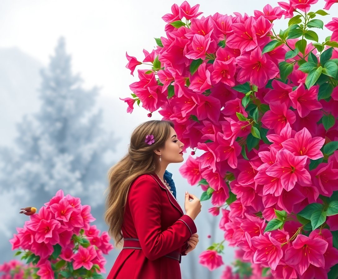 Ultimately, add final touches to the delicate bougainvillea petals and Victorian clothing details. Step back and admire your completed romantic scene. Your finished artwork captures the essence of Victorian courtship beneath nature’s colorful canopy.