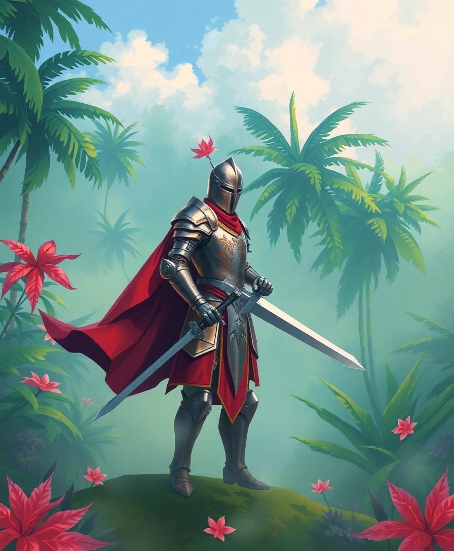 Ultimately, add final details to complete your tropical knight masterpiece. Step back and admire your artistic achievement. The finished piece showcases a perfect blend of Arthurian legend and natural beauty.