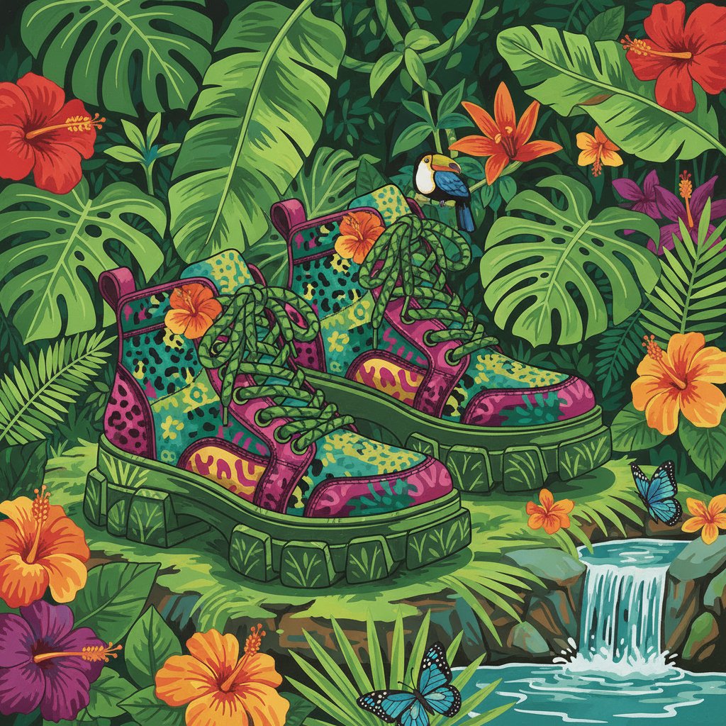 Ultimately, step back and admire your completed tropical sneaker masterpiece. The vibrant jungle patterns now dance across familiar sneaker silhouettes. Consequently, you’ve created a unique piece that celebrates both pop culture and natural beauty.