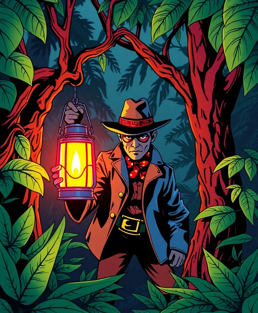 The realistic shadows and lantern lighting create authentic golden age comic atmosphere. Additionally, the tropical jungle setting provides rich detail perfect for display in any room.
