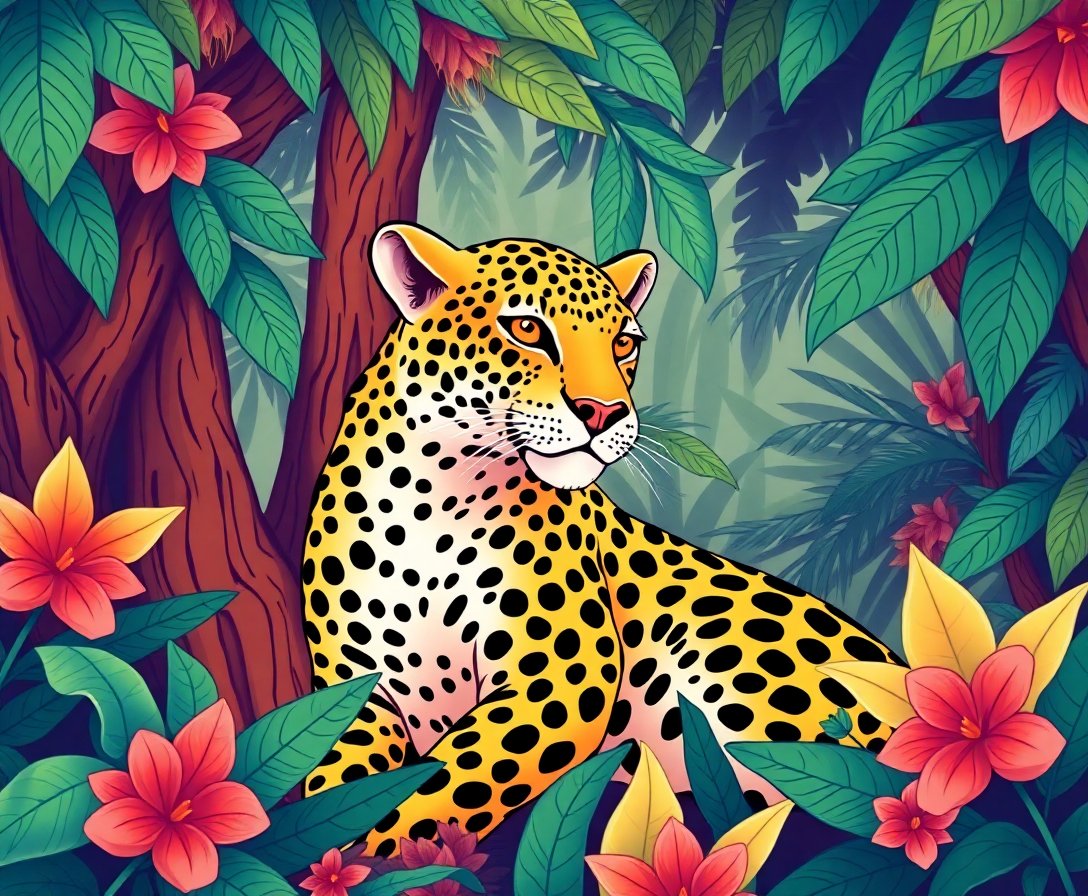Experience the joy of creating your own vintage animation classics inspired artwork. Transform blank canvas into a stunning tropical leopard scene that showcases your creativity and dedication.
