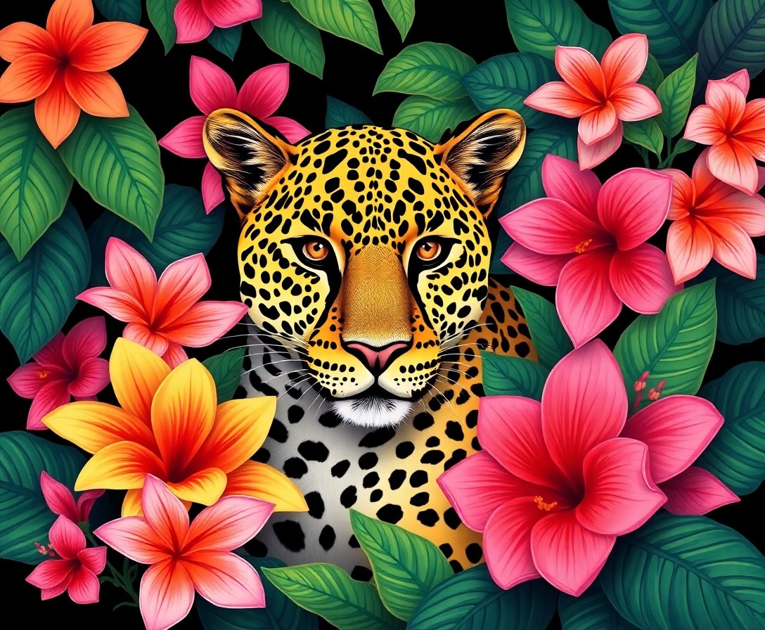 Leopard Among Tropical Blooms Paint By Numbers