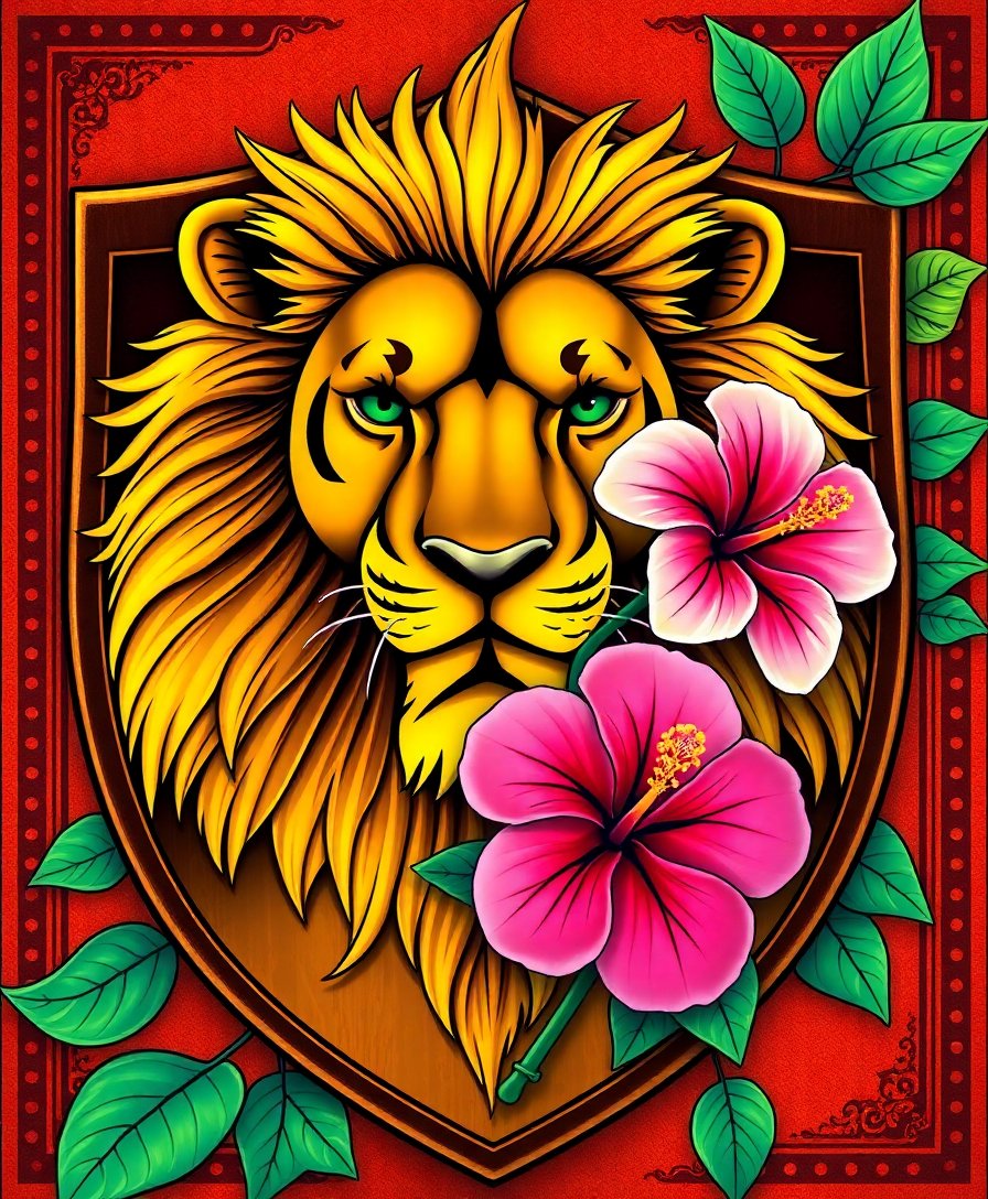 Transform your space with this stunning Lion And Hibiscus Shield Paint By Numbers masterpiece. This regal design combines majestic lion imagery with vibrant hibiscus flowers. Moreover, the intricate heraldry creates a captivating artistic experience. Additionally, each crimson detail brings royal elegance to your walls.