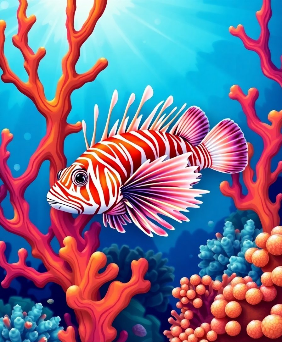 Transform your space with the stunning Lionfish Amidst Coral Branches Paint By Numbers, a captivating aquatic masterpiece. This detailed tropical artwork brings the vibrant reef ecosystem directly to your home. Moreover, the realistic design showcases the intricate beauty of venomous lionfish swimming gracefully through coral formations.