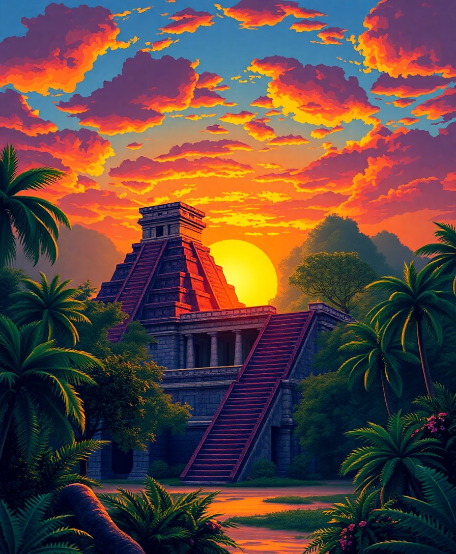 Ultimately, witness your completed temple bathed in golden dawn light. The finished artwork captures timeless beauty of Mayan architecture perfectly. Therefore, display your achievement with pride and satisfaction.