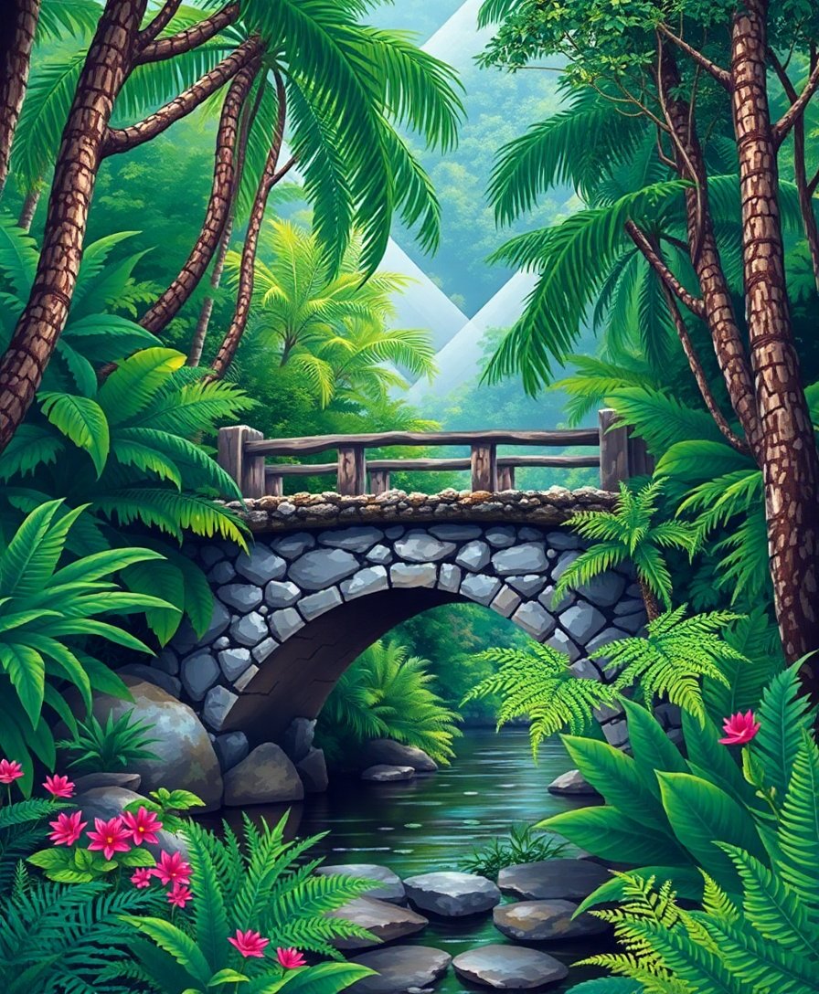Embark on your creative journey today with this Lost Tropical Stone Bridge Paint By Numbers adventure. Furthermore, discover the joy of creating beautiful art while exploring a mystical tropical paradise through every brushstroke.