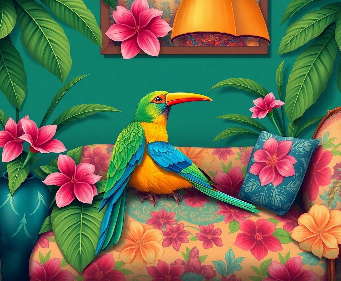 Lounging Tropical Vintage Bird Paint By Numbers