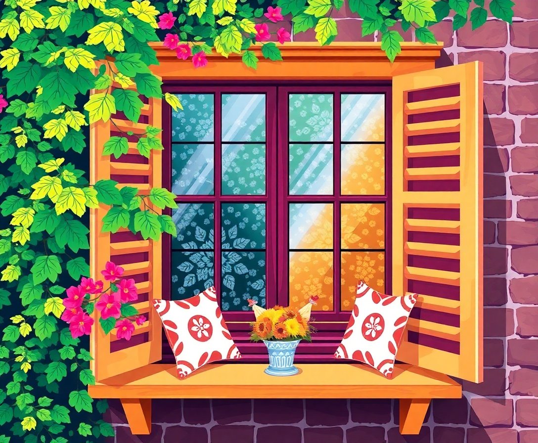 Transform your creative space with this enchanting Louvered Window Fabric Nook Paint By Numbers masterpiece. This captivating design captures the serene beauty of vintage textiles nestled beside weathered shutters. Each brushstroke brings you closer to recreating this charming heritage scene.