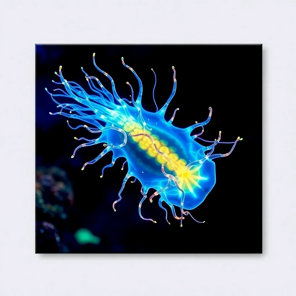 Discover the ethereal beauty of deep-sea creatures with this captivating Luminous Ocean Ctenophore paint by numbers kit. Transform your space into an underwater sanctuary while experiencing the mesmerizing world of bioluminescent marine life. This stunning artwork captures the delicate, translucent beauty of comb jellies in their natural habitat.