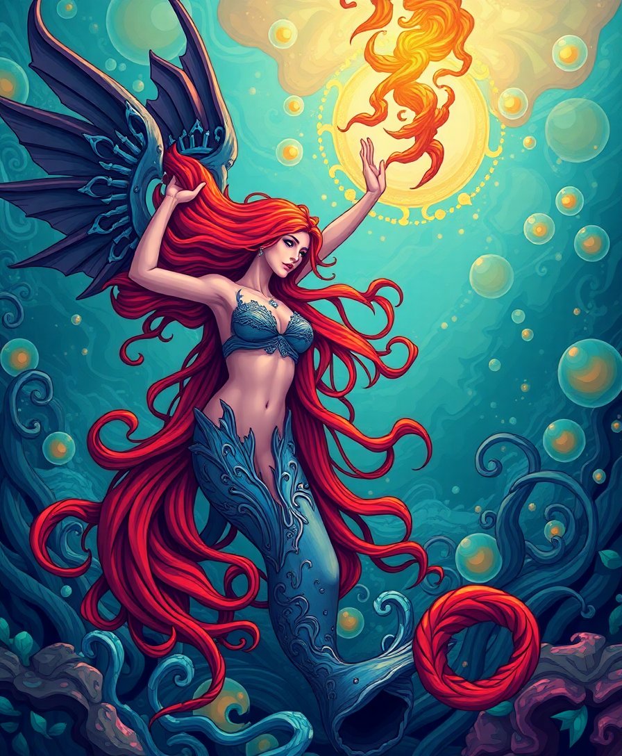 The realistic siren and shipwreck details create a captivating underwater scene. The deep ocean colors and mythical elements combine for a truly mesmerizing finished piece.