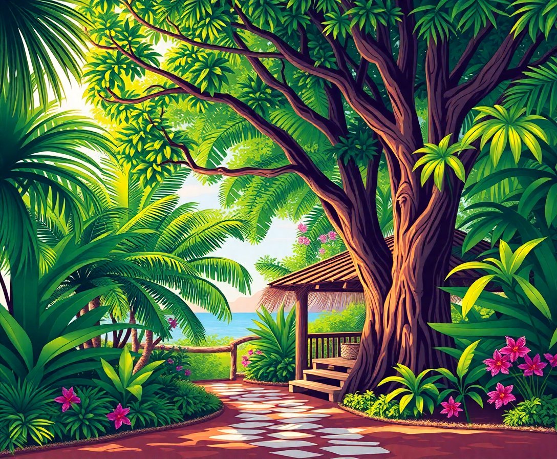 Embrace the tranquil beauty of tropical landscapes with this exceptional painting experience. Create your own lush tropical shores masterpiece that captures the essence of a peaceful banyan tree retreat.