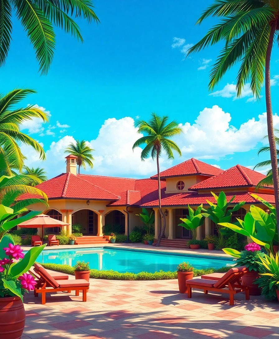 Create your own Cuban estate retreat and discover the joy of tropical villa painting. This nostalgic masterpiece awaits your artistic touch.