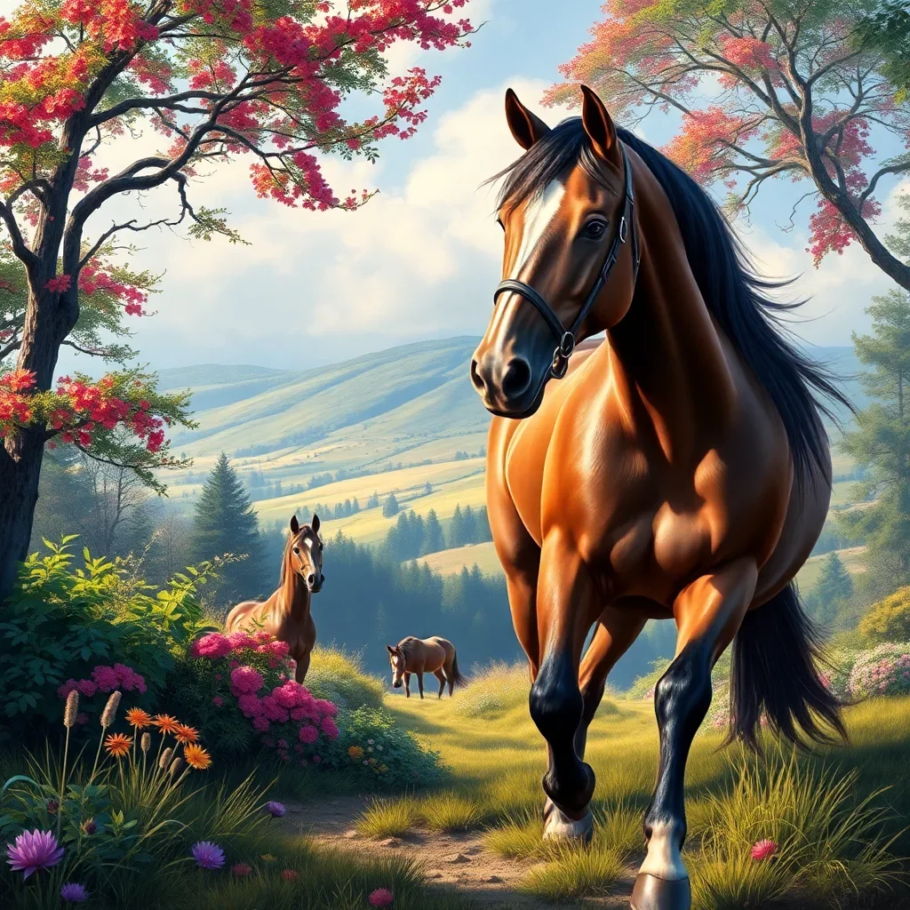 Ultimately, step back and admire your completed Highland masterpiece. The final touches bring together rolling hills, majestic horses, and dramatic skies into one cohesive work of art.