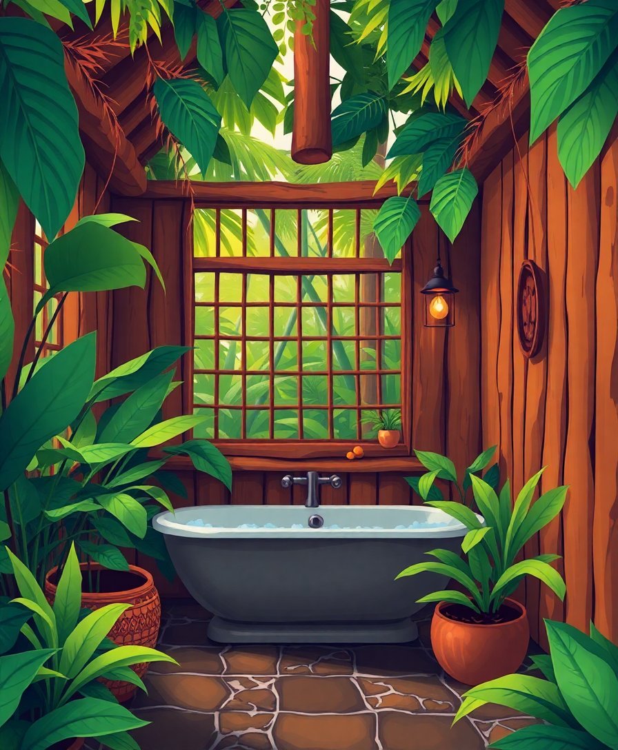 Transform your space with the serene beauty of a cozy indoor oasis through this captivating Lush Jungle Bathing Room Paint By Numbers masterpiece. This stunning kit brings the tranquil atmosphere of a tropical washroom sanctuary directly to your canvas.