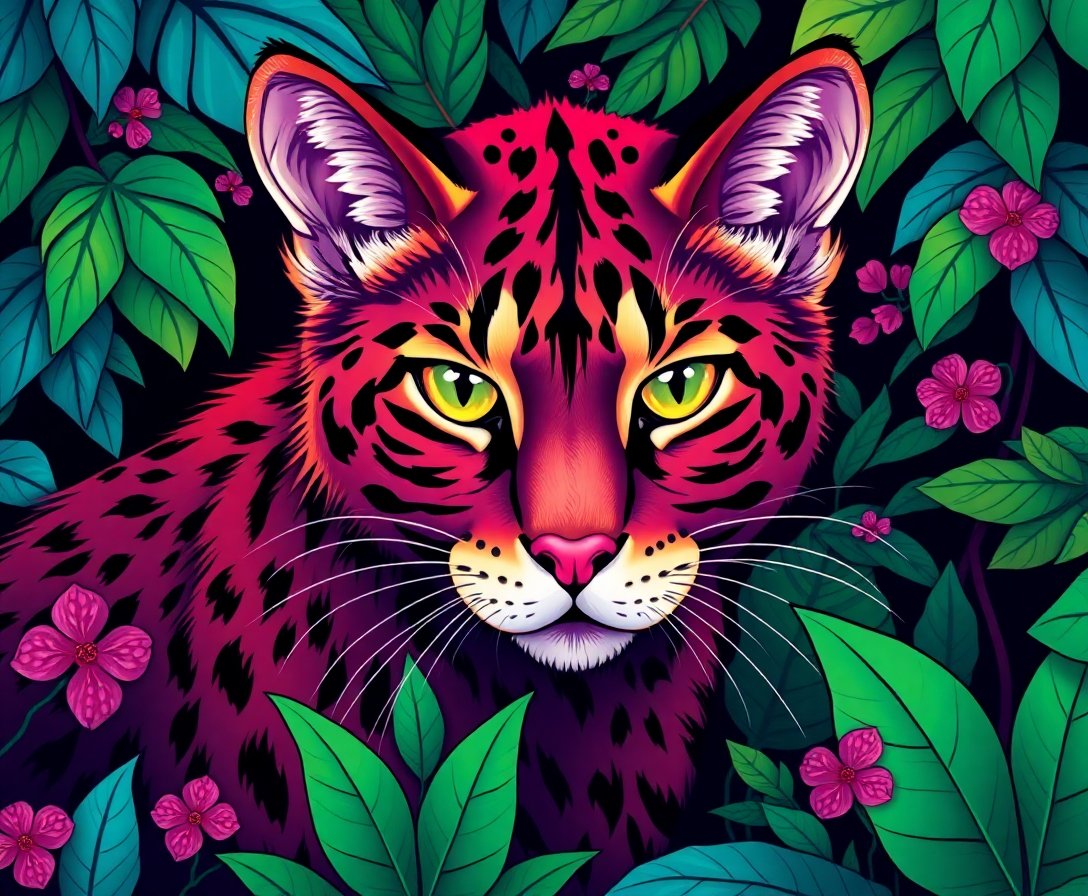 Transform your creative space with this stunning Lush Jungle Velvet Feline Paint By Numbers masterpiece. This captivating design showcases an exotic feline surrounded by vibrant tropical foliage, creating an enchanting artwork that brings the beauty of animals wildlife into your home.