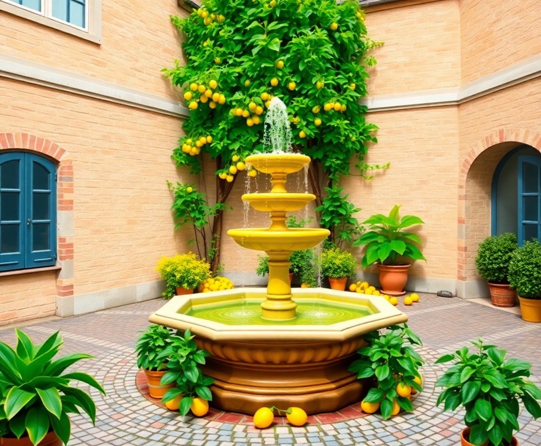 Lush Lemon Courtyard Fountain Paint By Numbers