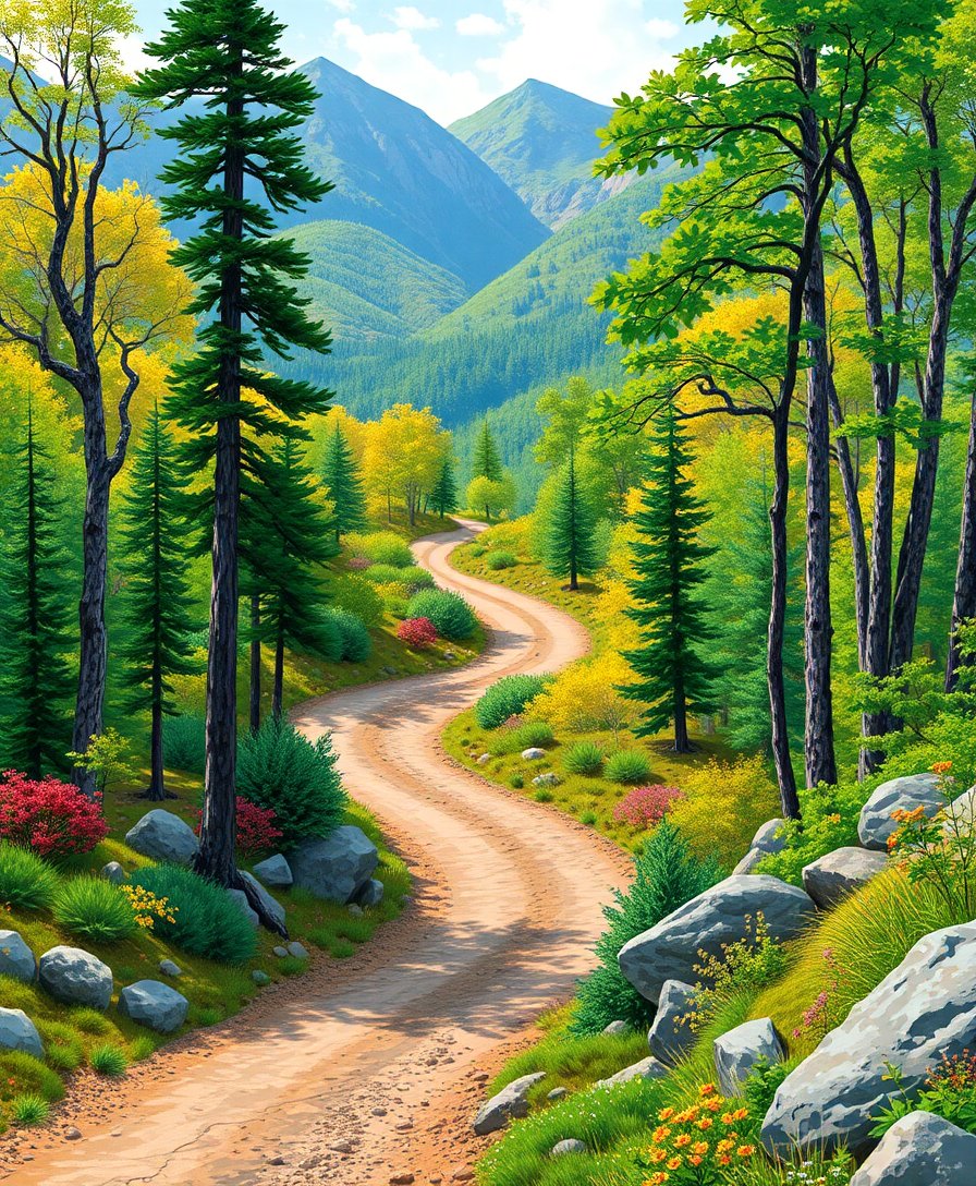 Ultimately, step back and admire your completed mountain vista. The realistic foliage and winding trail create an impressive focal point. Your artistic achievement deserves prominent display in your favorite space.