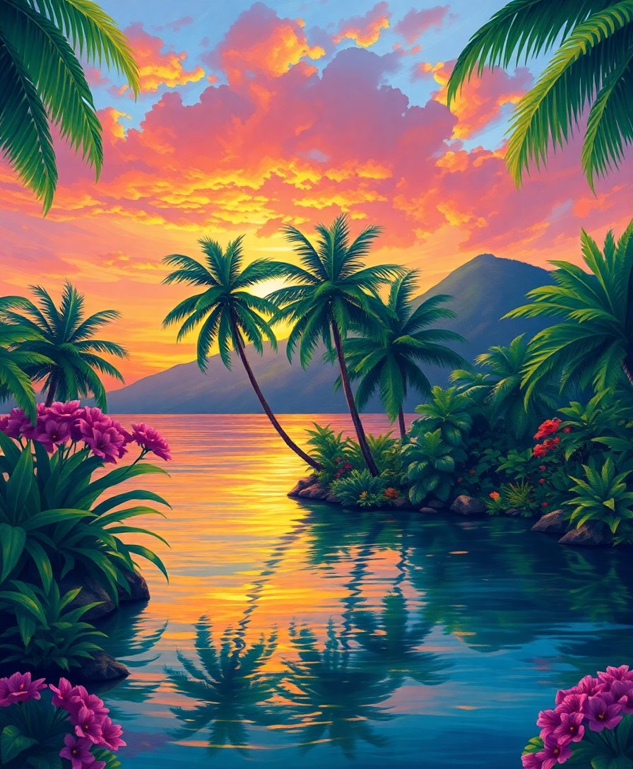 Begin your artistic journey today with this captivating tropical dawn scene. Whether you’re a beginner or experienced painter, this kit delivers satisfaction and beauty. Create your own slice of paradise with every carefully placed brushstroke.