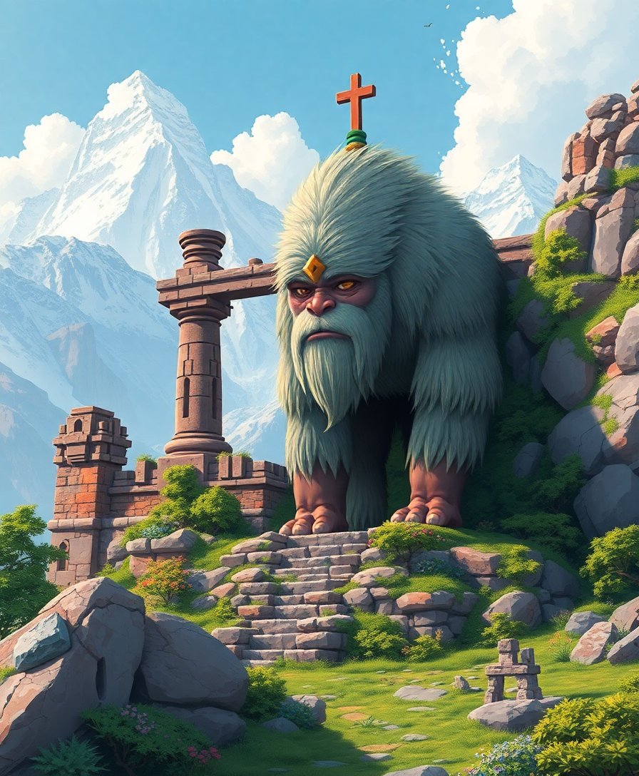 The combination of realistic foliage with magical elements creates a unique artistic challenge. The watcher emerges from ancient ruins with stunning detail and mystical atmosphere.