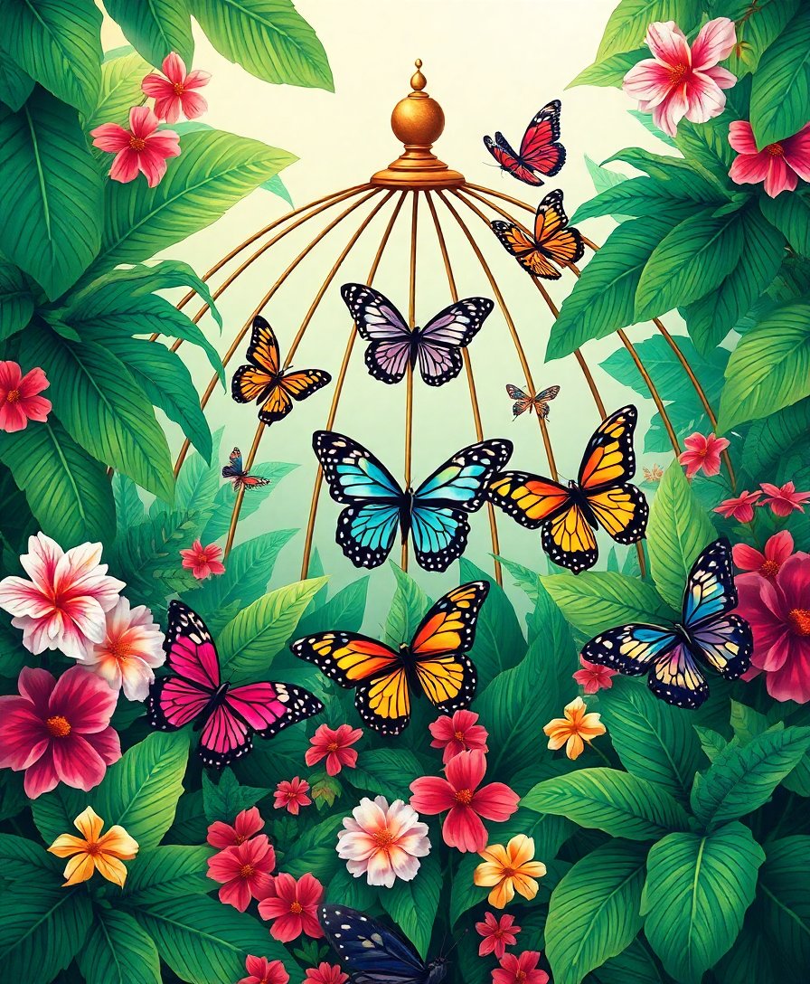 Transform your creative space with this stunning Lush Tropical Butterfly Dome Paint By Numbers masterpiece. This enchanting design captures delicate butterflies beneath an elegant glass dome, surrounded by vibrant tropical foliage that brings nature’s beauty directly into your home.