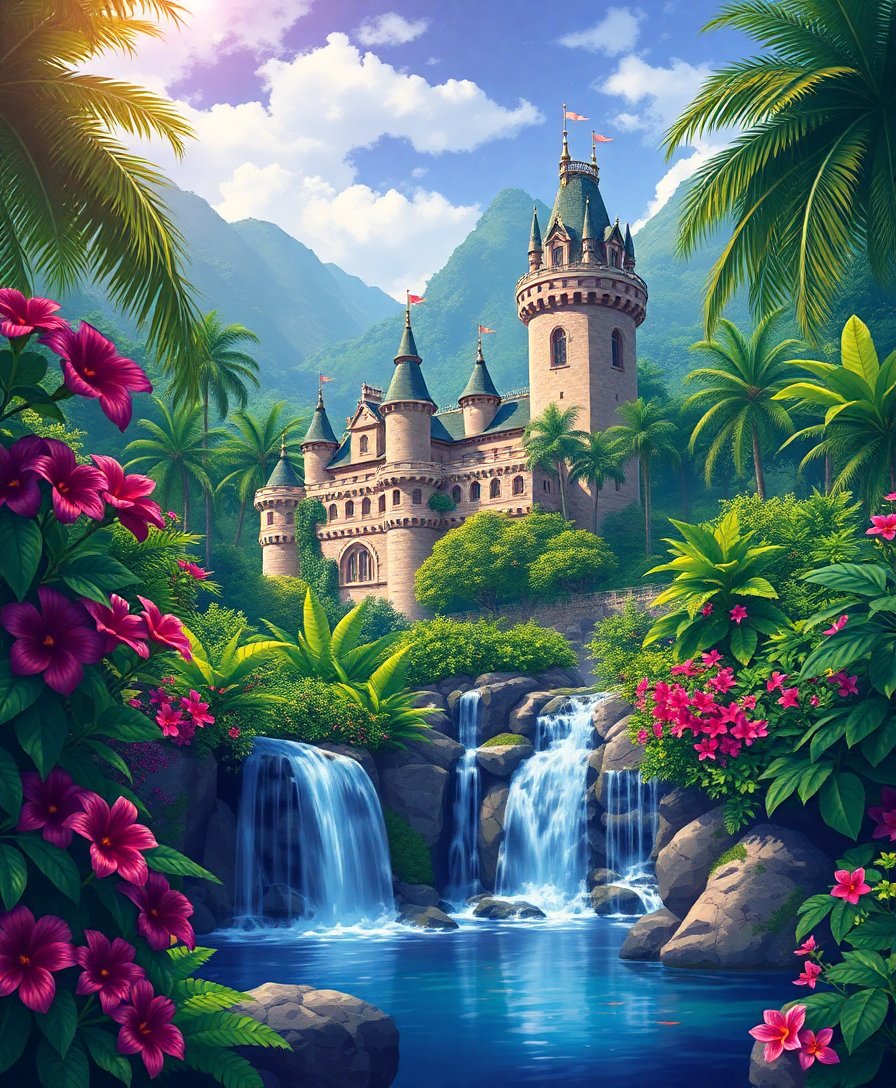 Lush Tropical Castle Cascade Paint By Numbers