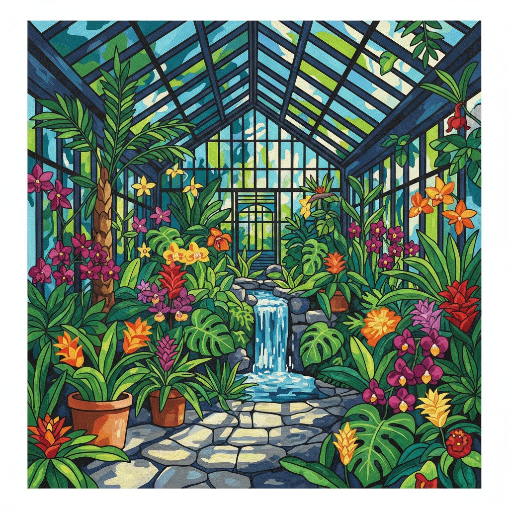 Transform your space with the vibrant beauty of tropical paradise through this Lush Tropical Glasshouse Flora Paint By Numbers masterpiece. Experience the joy of creating stunning botanical art while discovering the therapeutic benefits of paint by numbers. Each brushstroke brings lush foliage and exotic blooms to life.
