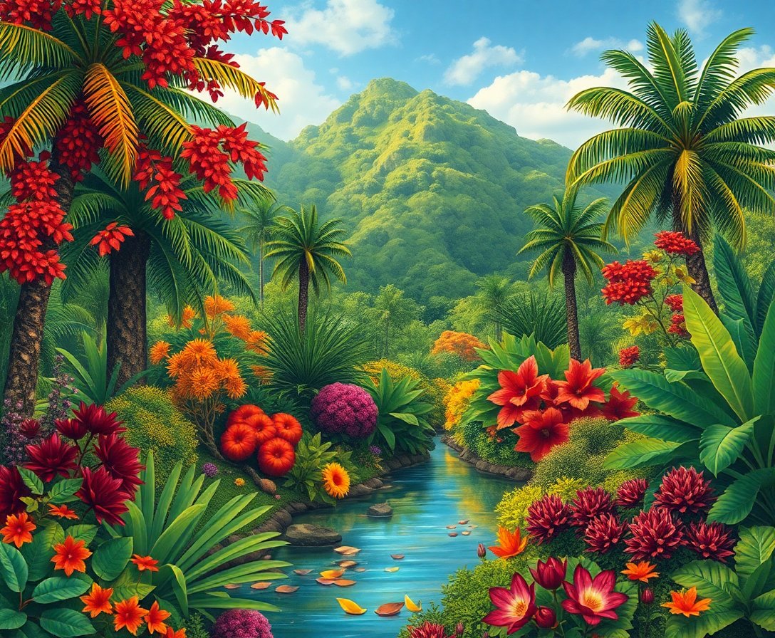 Transform your space with this captivating Lush Tropics In Autumn Paint By Numbers design that beautifully merges tropical vibrancy with seasonal warmth. This unique artwork captures nature’s stunning transition, featuring rich tropical fruits nestled among autumn’s golden embrace.