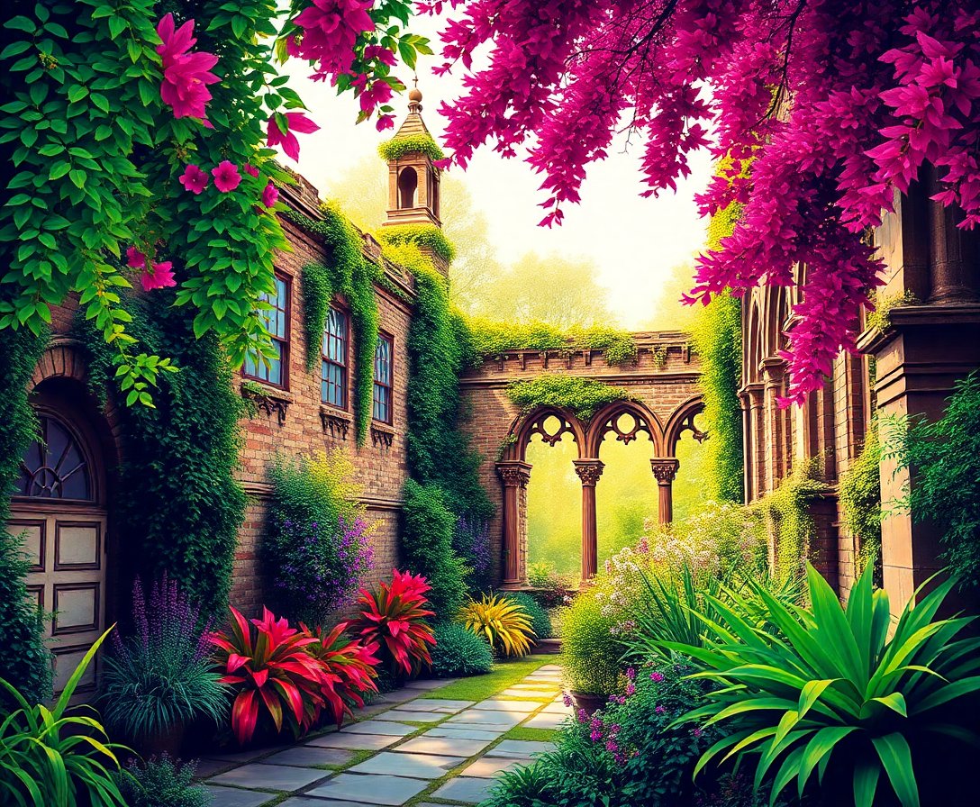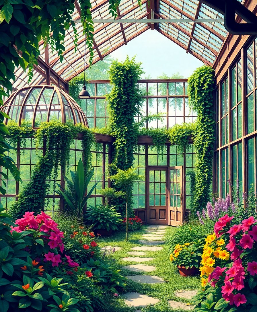 Ultimately, add the final touches of tropical foliage and weathered textures. Step back and admire your completed Victorian greenhouse scene, ready for display in your home or office.