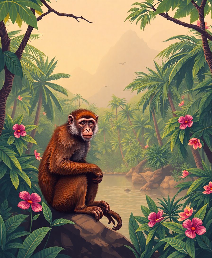 Create your own vintage macaque sanctuary today. Moreover, this timeless design brings tropical serenity into any room. Additionally, the finished piece makes an exceptional conversation starter that showcases your artistic talents beautifully.