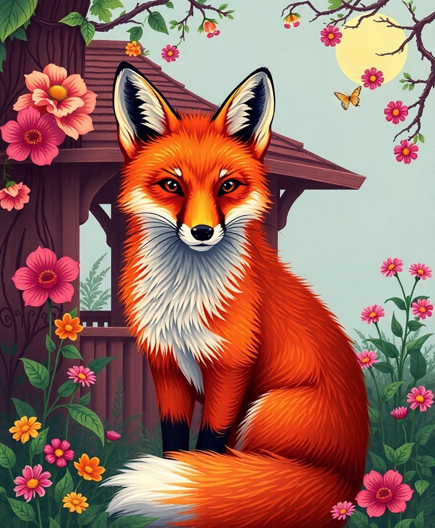 Transform your creative space with the enchanting Lush Vintage Pavilion Fox Paint By Numbers, a captivating blend of woodland charm and architectural elegance. This stunning design features a majestic fox nestled within an ornate vintage pavilion, surrounded by lush tropical flora that creates a truly magical artistic experience.