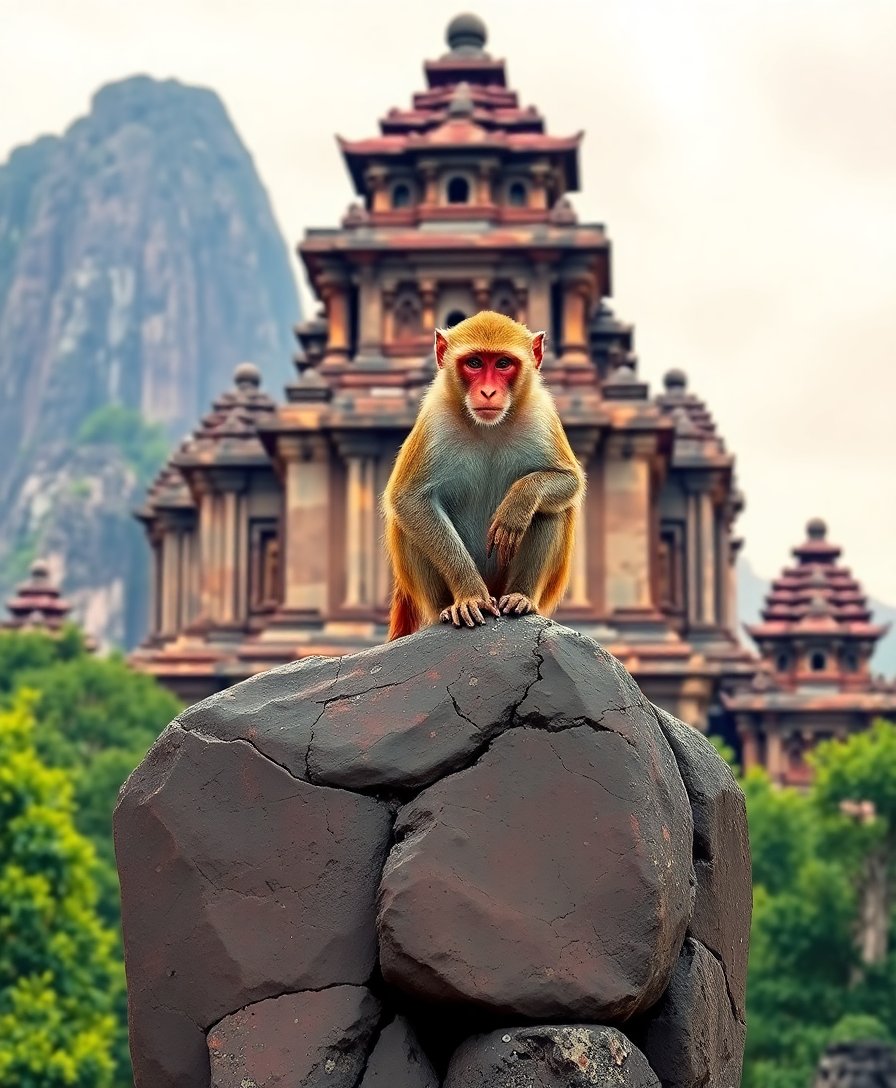Macaque Atop Ancient Stone Paint By Numbers