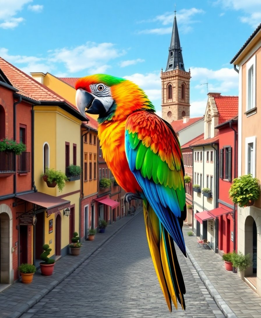 Macaw Over Old Town Paint By Numbers