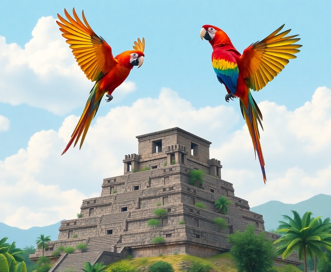 Transform your space with this breathtaking Macaws Above Forgotten Pyramid Paint By Numbers masterpiece. This stunning artwork captures vibrant tropical birds soaring majestically over weathered ancient ruins. Each brushstroke brings life to lush foliage and architectural details that transport you to a mystical world.